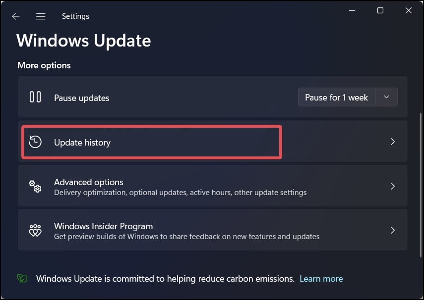 Pressione Windows + I para abrir as Configurações do Windows. Vá para Windows Update > Histórico de atualizações.