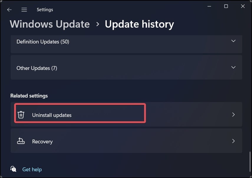 Nas configurações relacionadas, clique em Desinstalar atualizações .