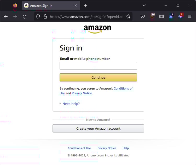 Em seu navegador da Web, inicie o site da Amazon. Faça login em sua conta.
