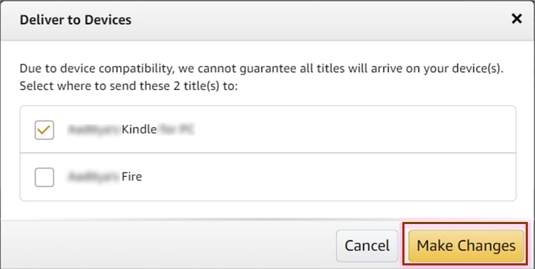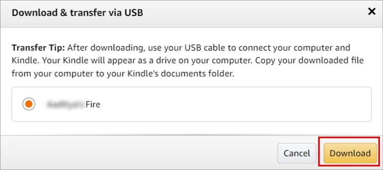 Escolha seu Kindle e clique em Download para confirmar.