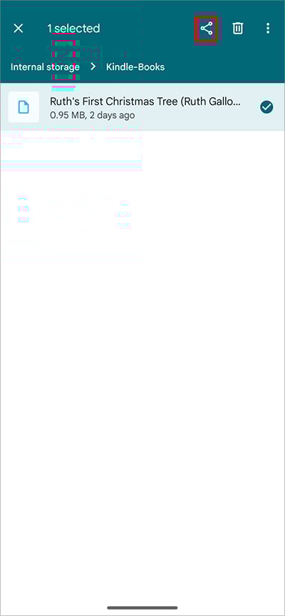 Localize e realce o Documento ou Livro que deseja enviar para o aplicativo Kindle. Em seguida, clique no ícone Compartilhar. Escolha Aplicativo Kindle.