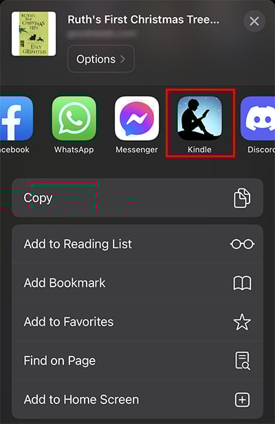 Encontre o livro que deseja adicionar no aplicativo Kindle. Toque no ícone Compartilhar.