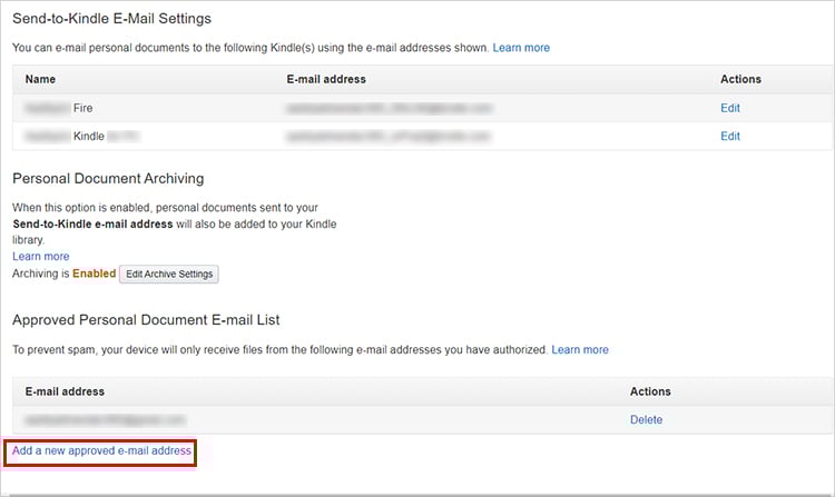 Antes de começar, você precisa garantir que seu endereço de e-mail do Kindle esteja definido como um endereço aprovado em sua conta da Amazon.