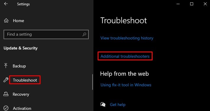 Pressione as teclas Windows + I no teclado. Clique no menu Atualização e segurança e escolha Solução de problemas. Clique em Solucionadores de problemas adicionais.