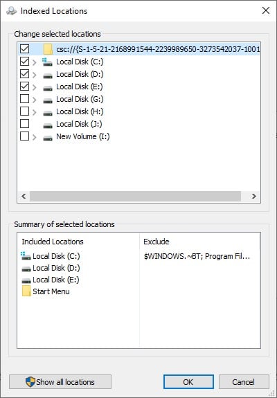 Se as configurações de indexação forem definidas de forma que seja necessário procurar em uma ampla variedade de locais para pesquisar um arquivo, isso pode consumir um tempo considerável. Por exemplo, se você procura frequentemente por arquivos localizados no Disco Local (C:), você pode ajustar as configurações para que o Windows procure apenas pelo disco C.