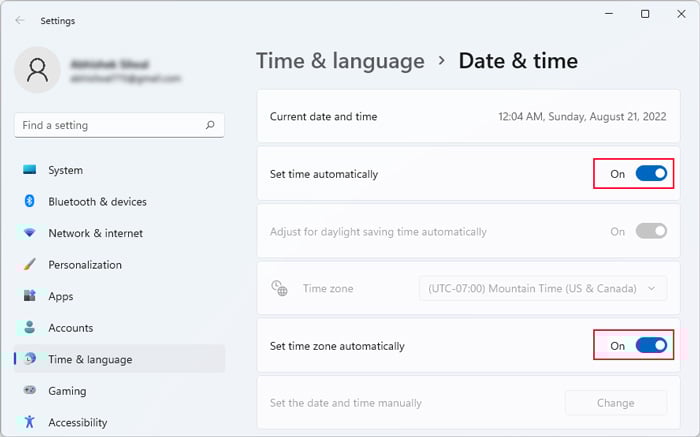 Como tal, seu sistema falha ao baixar a atualização. Portanto, você precisa manter a data e hora corretas no seu PC. Para fazer isso,