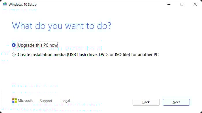 Atualizar usando o Assistente de atualização ou criação de mídia