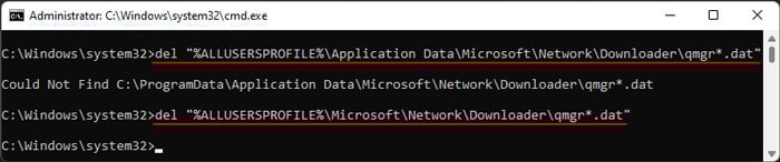 del”%ALLUSERSPROFILE%\Application Data\Microsoft\Network\Downloader\qmgr*.dat”