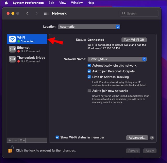 Clique na opção”Wi-Fi Connected”na lista à esquerda.