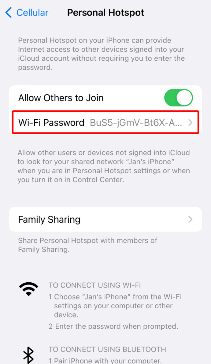 Você pode fazer o seu Mac esquecer o iPh atual uma conexão de ponto de acesso e tente reconectar digitando a senha. Antes de reconectar, siga estas etapas para confirmar a senha do ponto de acesso em seu iPhone: