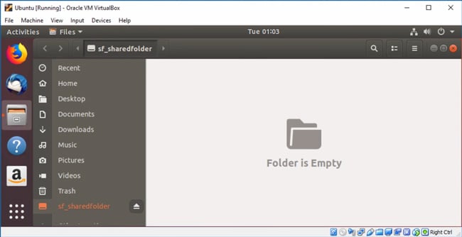 Acessar as pastas compartilhadas é fácil. No entanto, você precisa ter instalado o VirtualBox Guest Additions para acessar as pastas.