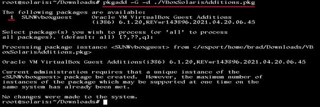 Para fazer isso, abra um terminal root e digite o comando pkgrm SUNWvboxguest. Em seguida, siga as etapas acima para reinstalar as adições de convidados.