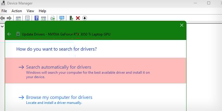 Vá em Pesquisar drivers automaticamente e o Windows instalará automaticamente os drivers mais recentes.