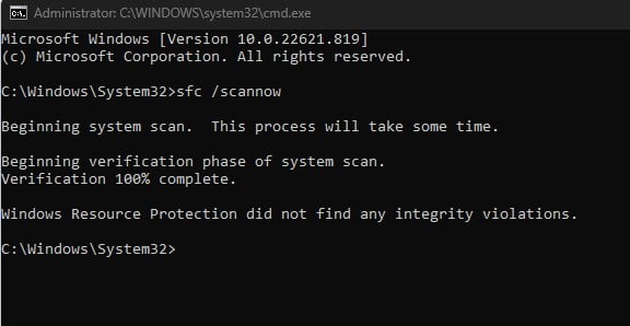 Conforme discutido anteriormente, drivers corrompidos ou conflitos no uso de recursos do driver podem causar falha em um processo crítico do sistema. Como todos os arquivos do driver são considerados arquivos do sistema, você pode executar o SFC (System File Checker) para localizar e corrigir quaisquer arquivos de sistema corrompidos ou ausentes.