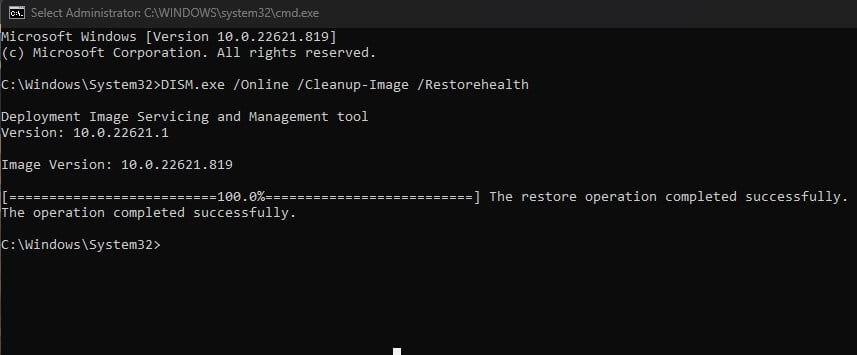 Por outro lado, o comando DISM verifica seu sistema operacional e repara quaisquer erros com a imagem do sistema.