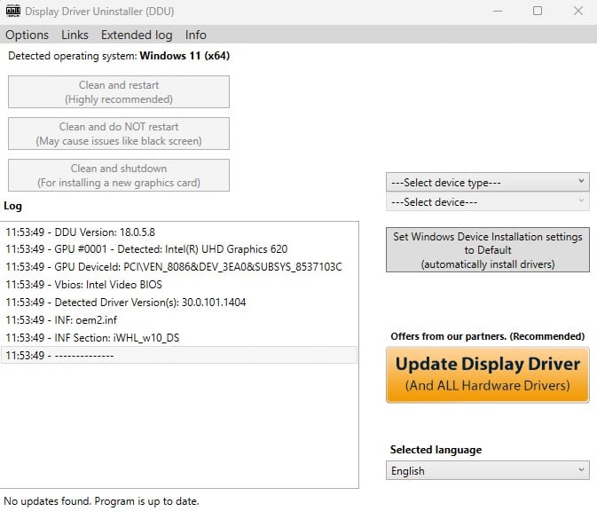 Baixe o Desinstalador do driver de vídeo da Internet e instale o aplicativo. Execute o PC no modo de segurança e inicie o DDU. O PC usa drivers básicos no modo de segurança. Portanto, você não enfrentará problemas de tela preta ao desinstalar o driver de vídeo.