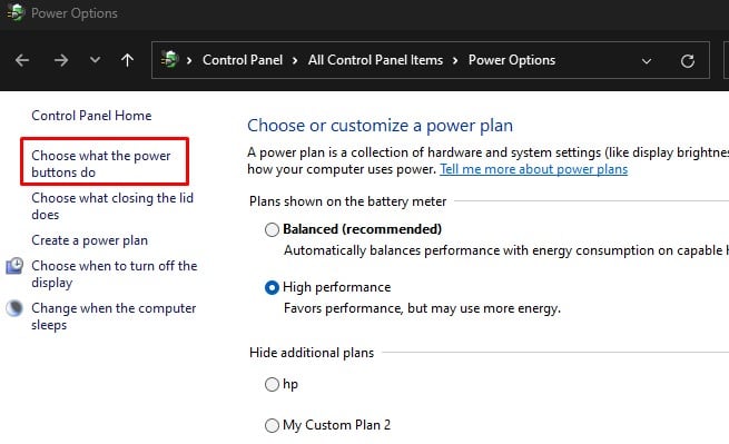 Abra Executar. Digite pwercfg.cpl e pressione Enter para abrir as Opções de energia. À esquerda, selecione Escolher a função dos botões de energia.