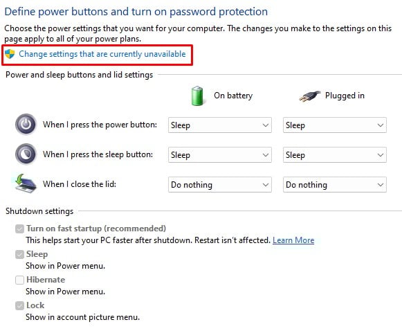 Em Configurações de desligamento, desmarque Ativar inicialização rápida e Salvar mudanças.