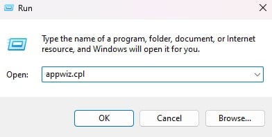 Pressione a tecla Windows + R para abrir Executar. Digite appwiz.cpl e pressione Enter para abrir Programa e Recursos