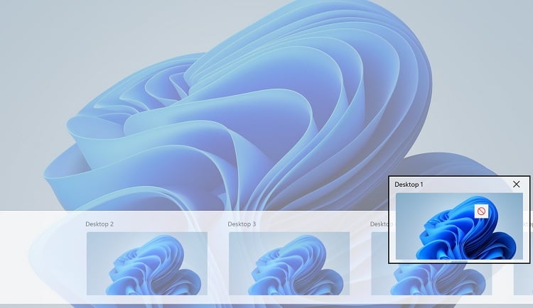 Como alternativa, você pode pressionar diretamente o ícone fechar para excluir a área de trabalho.
