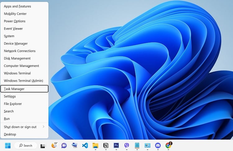 Pressione Windows + X para abrir o menu Quick Link e escolha Gerenciador de Tarefas.