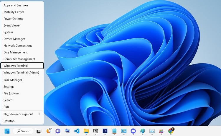 Use Windows + X e escolha Windows Terminal no menu Quick Link.