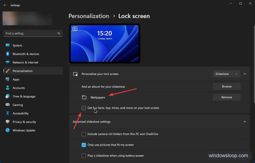 按照以下步驟在 Windows 11 上啟用和設置鎖屏幻燈片放映: