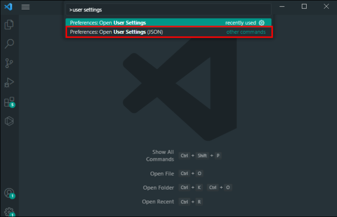 前往“首選項”並按提示,將您引導至“用戶設置 (JSON)”。