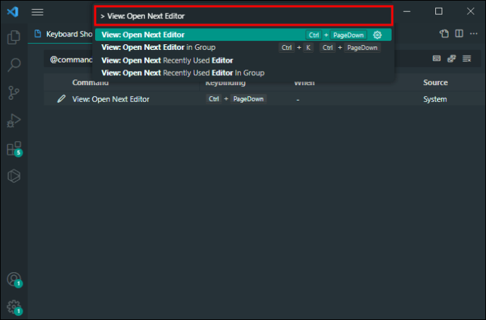 輸入“查看:打開下一個編輯器”查看轉到下一個窗口簇的快捷方式。