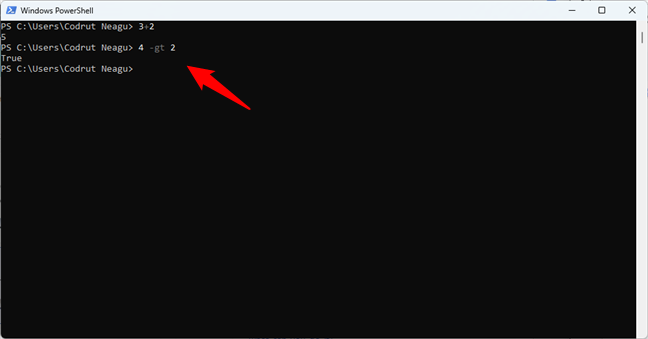 要繼續,PowerShell 還支持運算符,您可以使用這些運算符當您需要在不同的值或對象之間進行計算或比較時可以使用。例如,+ 運算符允許您添加數字,而-gt 則告訴您第一個值是否大於第二個值。