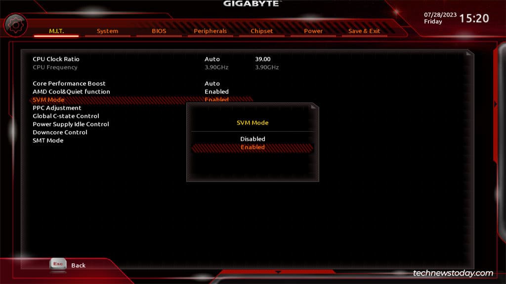 在技嘉的情況下,它通常被稱為SVM (AMD) 或 VT-x (Intel),可以從芯片組或高級 CPU 設置部分進行配置。