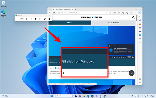 無論您如何在Windows 中打開放大鏡,一旦打開,您的屏幕自動放大 200%。在 Windows 11 和 Windows 10 中,放大鏡如下所示: