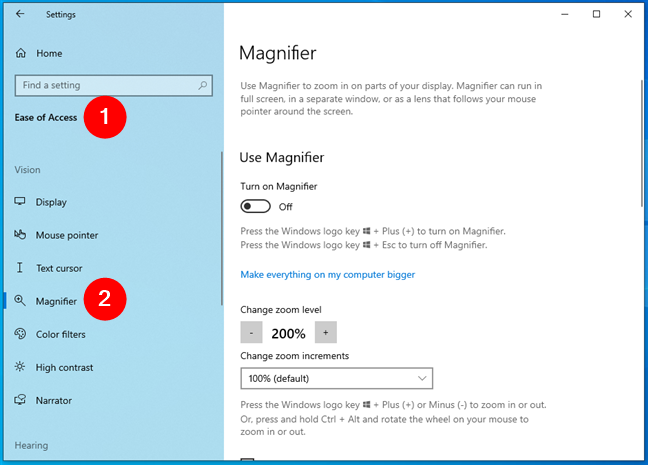 設置> 輕鬆訪問是您可以在Windows 10 中找到放大鏡工具的位置