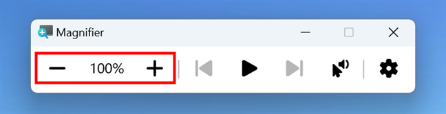 然後,您可以通過按減號 (-) 或加號 (+) 來更改縮放級別。它們與放大鏡應用程序中顯示的縮放按鈕具有完全相同的效果,可減小或增大縮放級別。