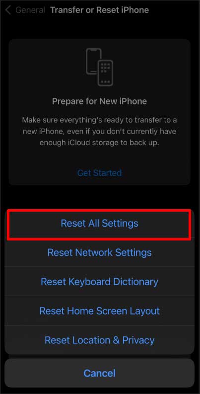 當您重置所有設置時,整個設置,包括網絡設置、鍵盤字典、主屏幕佈局、位置和隱私,都會恢復到默認狀態。執行此重置很可能會解決您的聲音不響的問題。