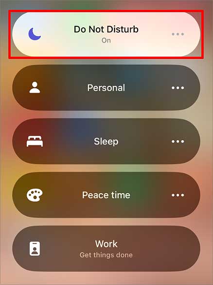 向下滑動右上角打開控制中心。長按請勿打擾焦點選項.