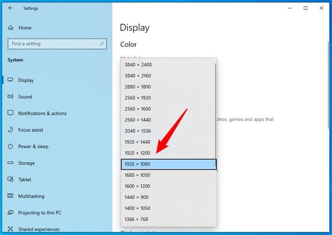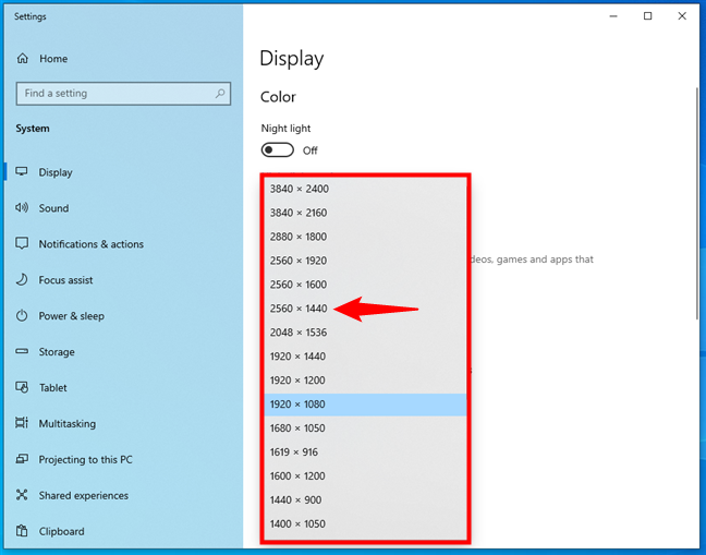注意:可用的屏幕分辨率和最高顯示分辨率取決於您的設備監視器。例如,如果您的顯示器是 1080p,則您的 Windows 10 PC 上可能最多只能獲得 1920 x 1080 分辨率。同樣,對於 1440p 顯示器,您通常最多可以獲得 2560 x 1440 分辨率。
