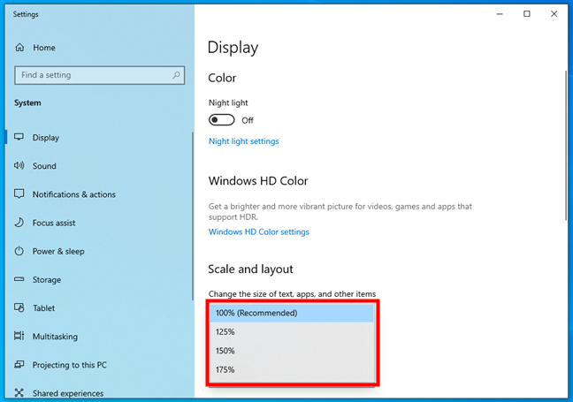 用於更改Windows 10 中文本、應用程序和其他項目大小的選項
