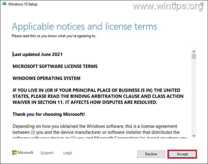 4.最後在下一個屏幕上 確保選中“保留個人文件和應用程序”*選項,然後單擊繼續,在保留文件和應用程序的同時安裝 Windows 10 企業版 LTSC。