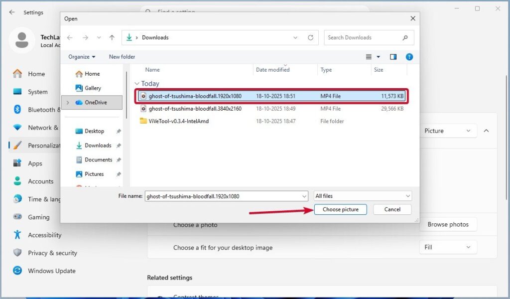 導航到保存視頻壁紙文件的文件夾 (.mp4、.mkv 等)並選擇它。