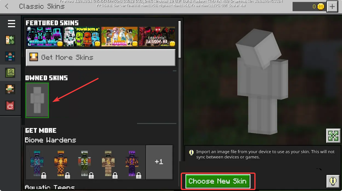 我可以在 Java 和 Bedrock 上使用相同的皮膚嗎? 可以。兩者都接受 PNG 外觀,但導入屏幕不同。