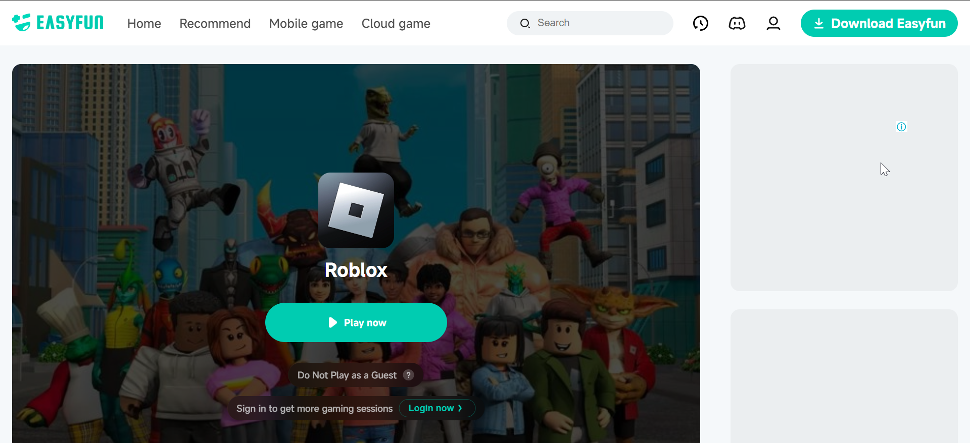 Now.gg 是在瀏覽器上玩 Roblox 的熱門選項。只需打開網站,使用您的 Roblox 帳戶登錄,然後開始玩。無需設置或安裝。請記住,遊戲玩法取決於您的互聯網質量和區域可用性。
