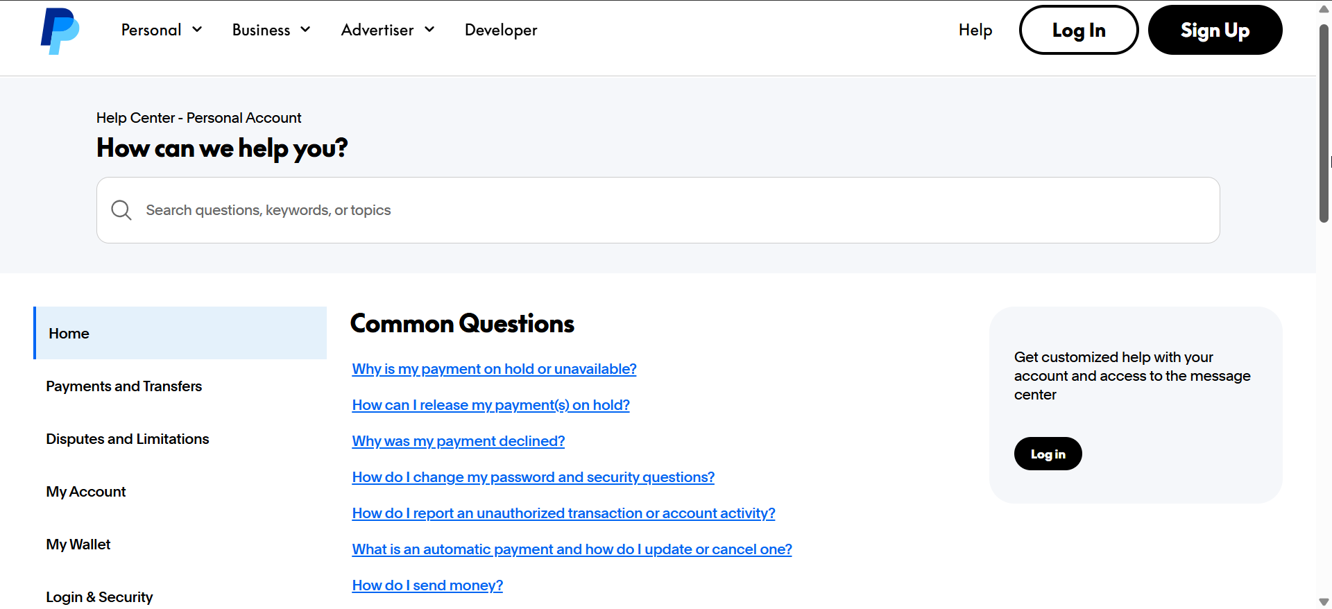 第 1 步:訪問 PayPal 幫助中心