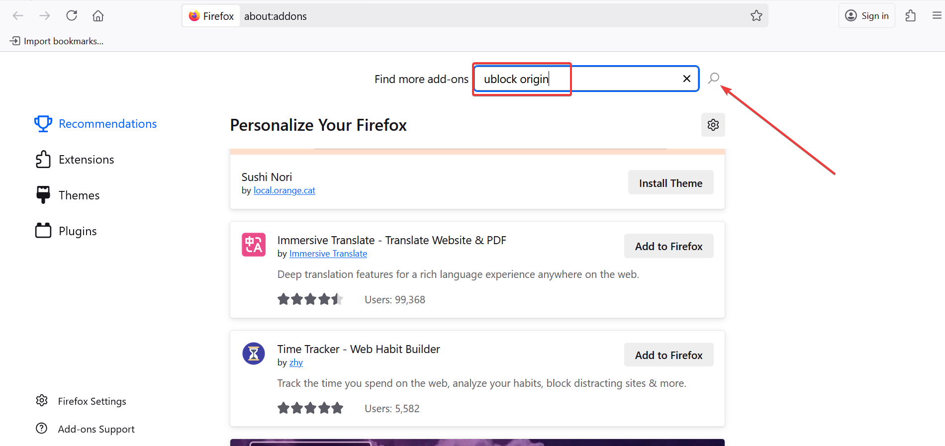 將 Firefox 更新到最新版本。 打開附加組件管理器並蒐索 uBlock Origin。 添加由 Raymond Hill 驗證的擴展。 檢查該圖標是否出現在工具欄中。 如果需要,配置過濾器或白名單受信任站點。 在網站上進行測試以確認阻止已激活。