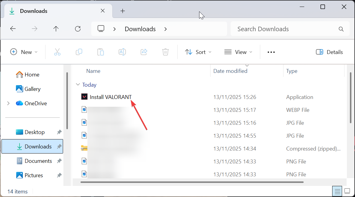 打開瀏覽器並訪問 Riot Games 的官方 Valorant 下載頁面。接下來,單擊“下載”並將安裝程序文件保存到您的 PC。現在,按 Win + E 打開文件資源管理器並轉到“下載”文件夾。
