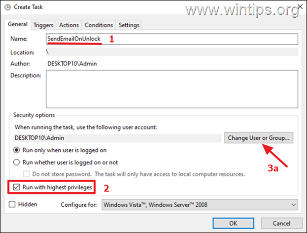 2a. 輸入任務名稱(例如“SendEmailOnUnlock”)