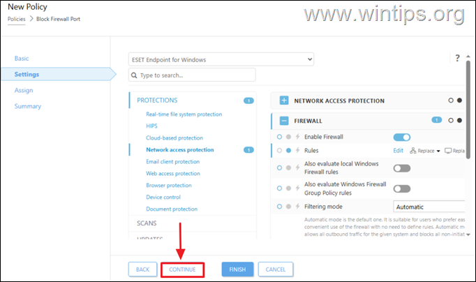 要創建新的 ESET PROTECT 以關閉/阻止所有託管 ESET Endpoint 安全客戶端上的特定端口: