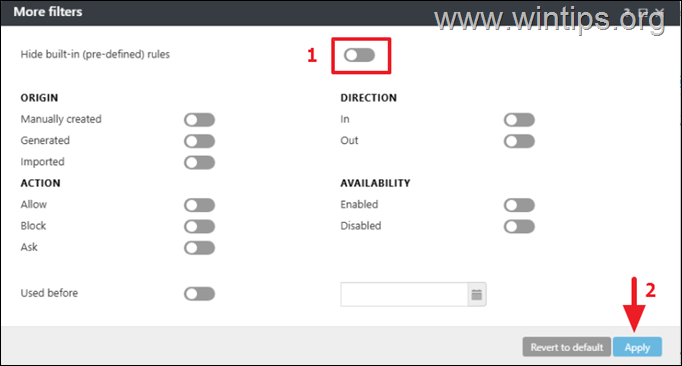 5d。 設置隱藏內置規則切換到關閉並點擊應用。
