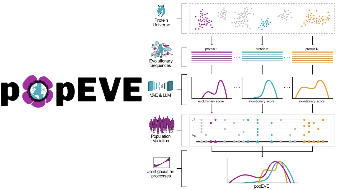 popEVE 通過將深度進化數據(使用 EVE 和 ESM-1v 語言模型)與人口限制相結合來解決這個問題。為了確定自然耐受的變異,該團隊利用了英國生物銀行 (UKBB) 和 gnomAD v2 的數據。
