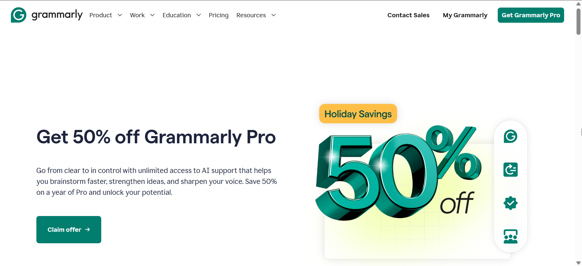檢查您的學校或雇主是否提供 Grammarly Premium。 激活您的機構電子郵件帳戶以解鎖免費訪問權限。 將 Grammarly Free 與其他免費寫作工具結合起來,可獲得接近高級的結果。 關注季節性 Grammarly 促銷活動或免費試用。 如果您需要高級版,請考慮折扣年度計劃。 避免不安全的黑客攻擊和共享帳戶。